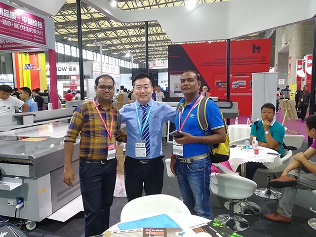 迄今為止,潤彩是每年建材展、廣告展、玻璃展、酒瓶展、保溫杯展等均被受邀的UV打印機行業(yè)的企業(yè)。來參展的客戶都非常認(rèn)可傲彩的產(chǎn)品,以下是部分參展的現(xiàn)場決定合作客戶的照片。