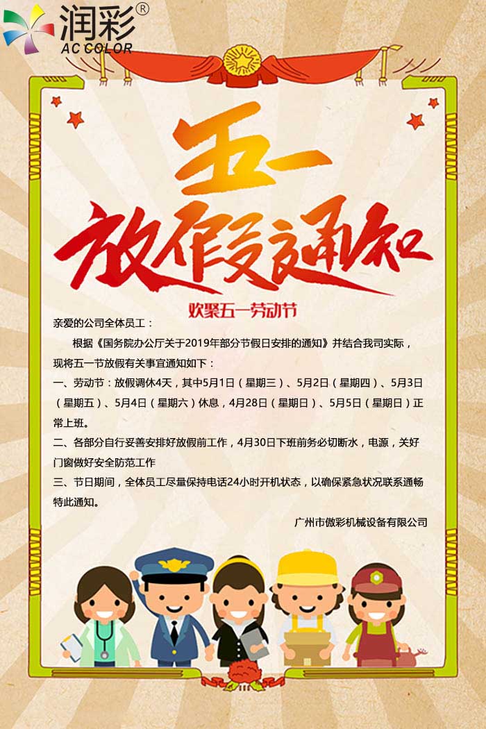 傲彩機械2019年五一勞動節(jié)放假通知