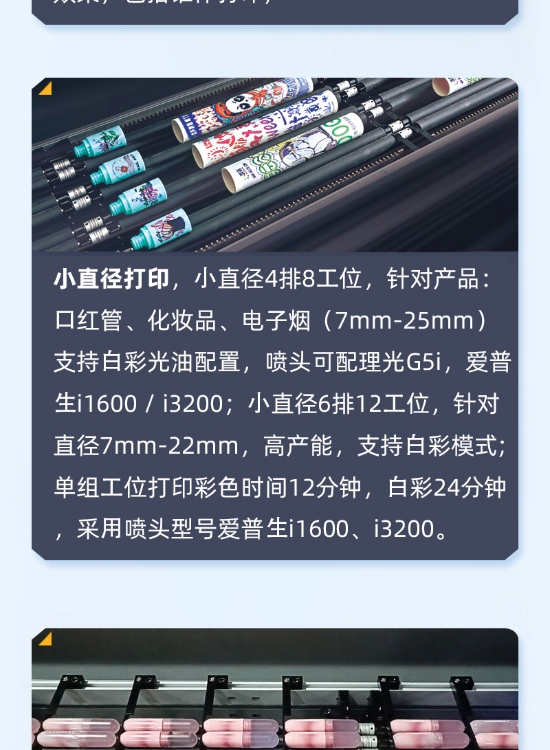 傳統(tǒng)的絲網(wǎng)印刷需要菲林制版,制版成本200元一張,工藝復(fù)雜,生產(chǎn)周期長(zhǎng)。只可打印單色打印成本較昂貴,做好的絲網(wǎng)印點(diǎn)不能消除,需要批量生產(chǎn)來降低成本,無法達(dá)到小批量或個(gè)別產(chǎn)品印刷。潤(rùn)彩圓柱體打印機(jī),采用高科技UV數(shù)碼印刷工藝,全新工業(yè)化,雙工位,雙夾具生產(chǎn)每小時(shí)100-200個(gè),不需要復(fù)雜的排版設(shè)計(jì),不用制版,適合多種類、個(gè)性化印刷。不限制最少數(shù)量,減少了印刷成本與時(shí)間。只需要簡(jiǎn)單的圖片處理,計(jì)算好相關(guān)數(shù)值后直接用uv打印軟件進(jìn)行操作。